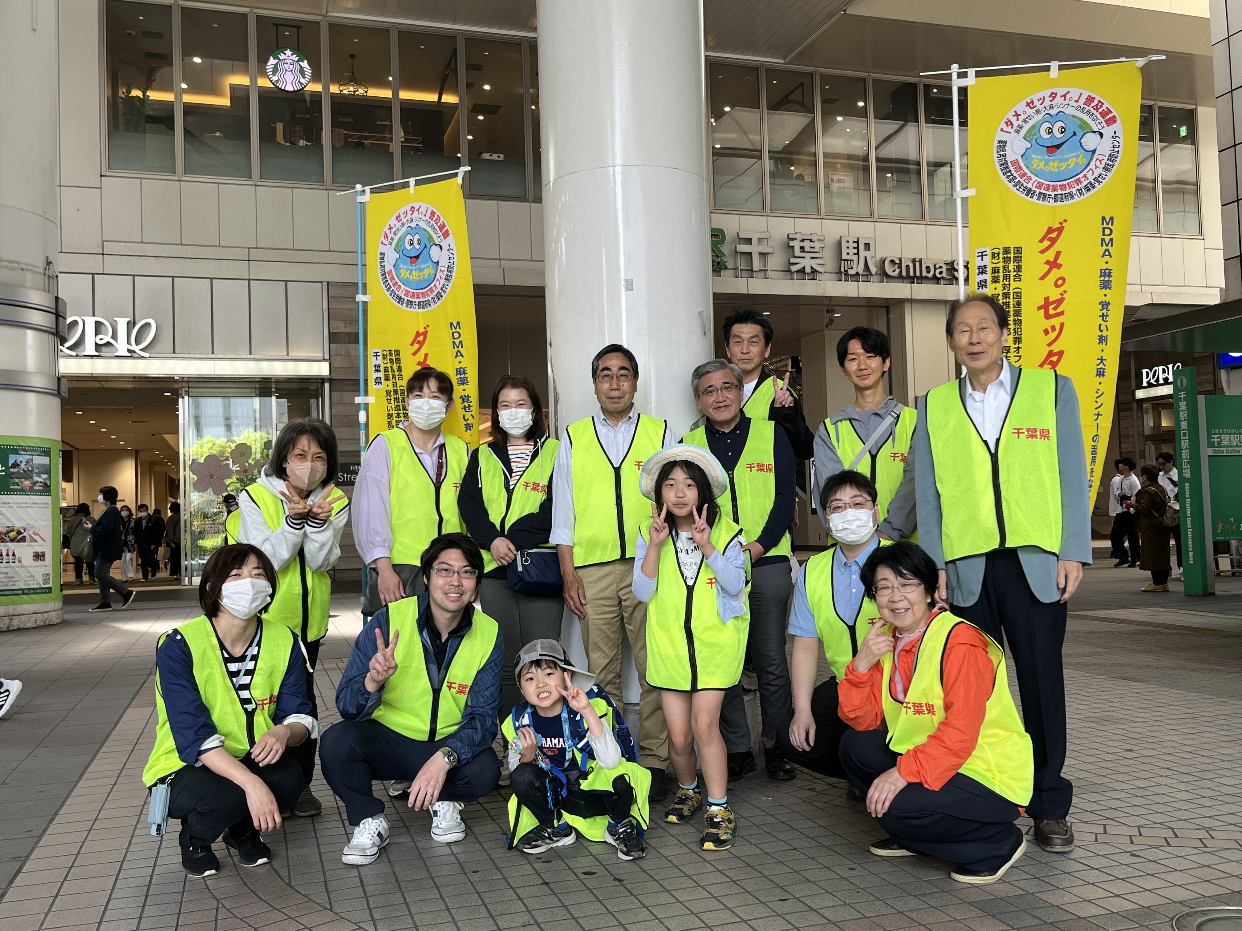 5月5日(月・祝)に、薬物乱用防止街頭キャンペーンの啓発活動を千葉駅東口1階ロータリーにて行いました。県薬業会と合同で行っている、毎年恒例の活動です!